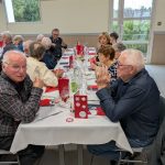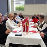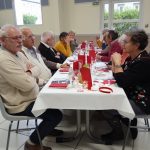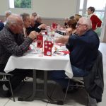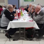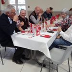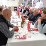 C’est pas moins de 160 habitants de la commune, âgés d’au moins 70 ans qui ont pu apprécier quelques heures de convivialité autour d’un succulent repas de fête précieusement mitonné par “Les Délices de Julien” et sa brigade, et servi par les bénévoles du CCAS, renforcés pour l’occasion par un dynamique échantillon des conscrits de l’année, particulièrement organisés et respectueux des consignes prodiguées par Colette.