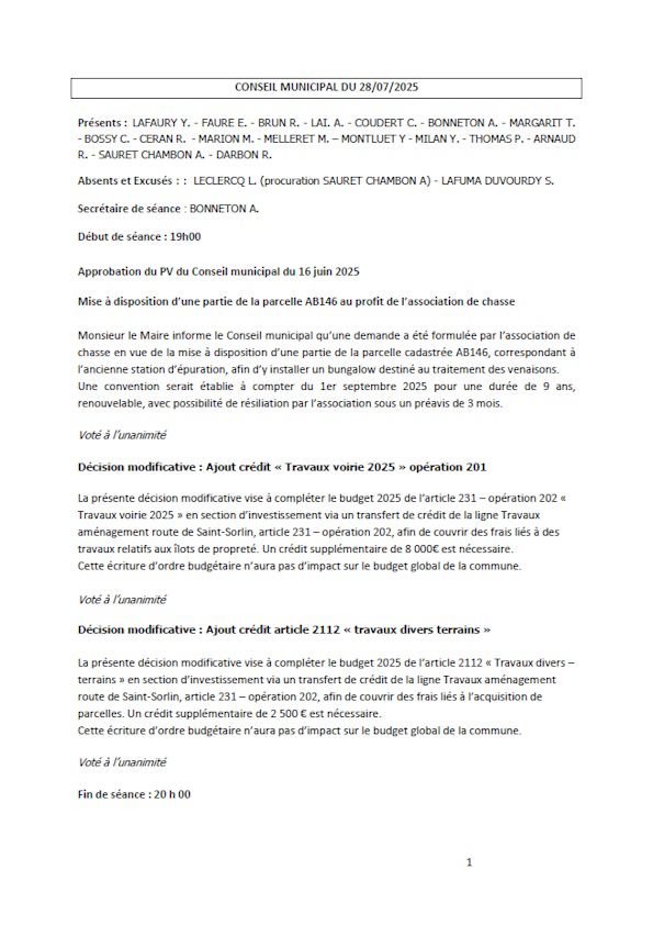 - Décision modificative : Ajout crédit article 2112 « travaux divers terrains »