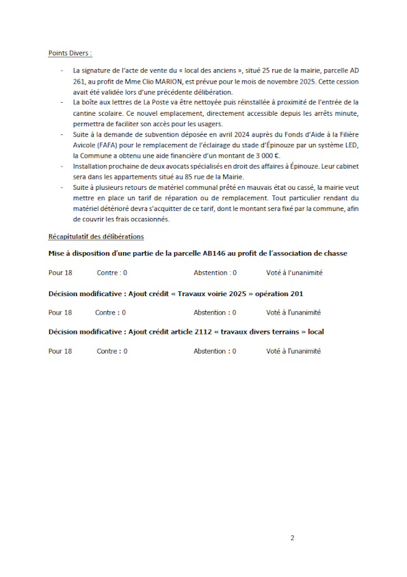 - Décision modificative : Ajout crédit « Travaux voirie 2025 » opération 201