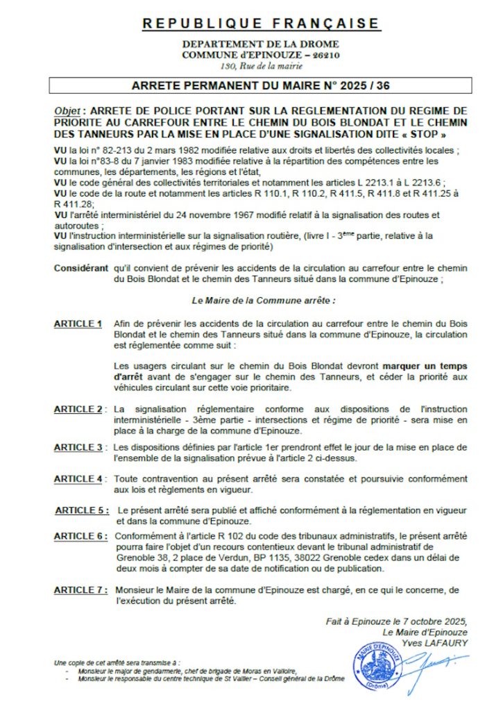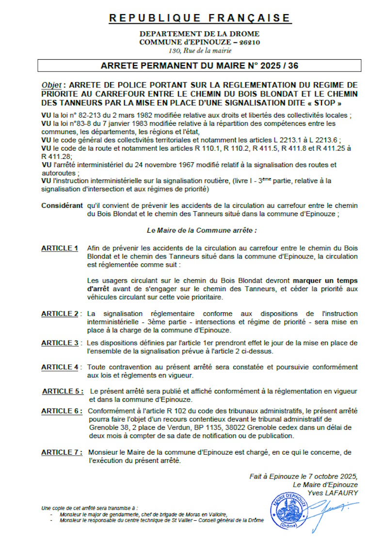 ARRÊTÉ PERMANENT 2025-36