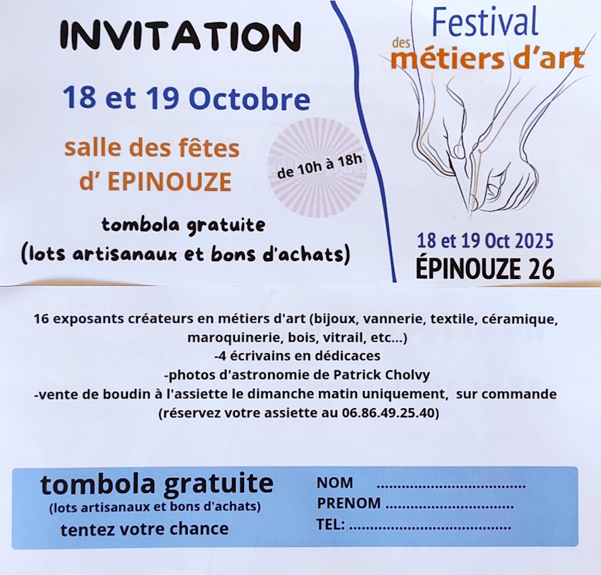 notre festival approche, c’est le moment de vous inviter à venir nous rendre visite et partager un verre en toute convivialité dimanche matin 19 octobre, à partir de 11h.