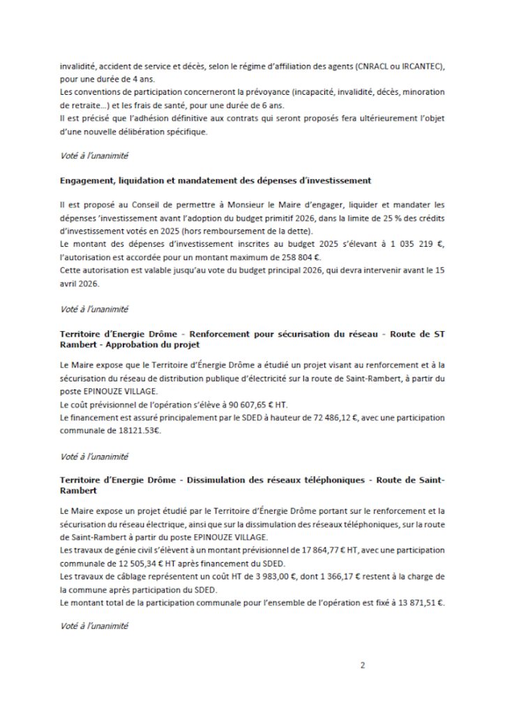 - Territoire d’Energie Drôme – Renforcement pour sécurisation du réseau – Route de ST Rambert – Approbation du projet