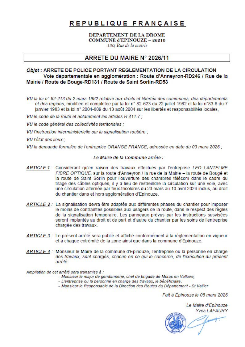 ARRÊTÉ 2026-11