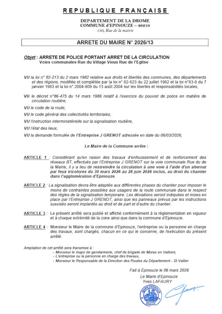 ARRÊTÉ 2026-13