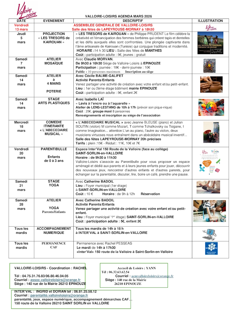 Pour celles et ceux qui avaient eu cette info précédemment, il y a une correction à faire dans le tarif du stage « Yoga » qui est de 15€ cette saison.